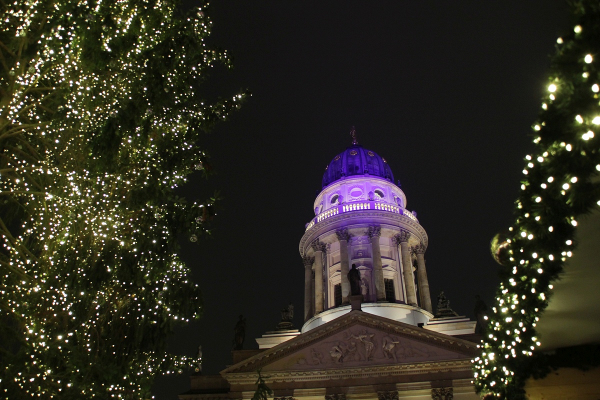 Deutscher Dom, jonka takana yllättäen joulumarkkinat.
