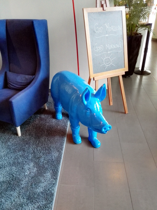 Huomenta. Valitettavasti sininen saapasjalkasika ei tee geneerisestä hotellistanne persoonallista. Hieman oudon kyllä tekee.