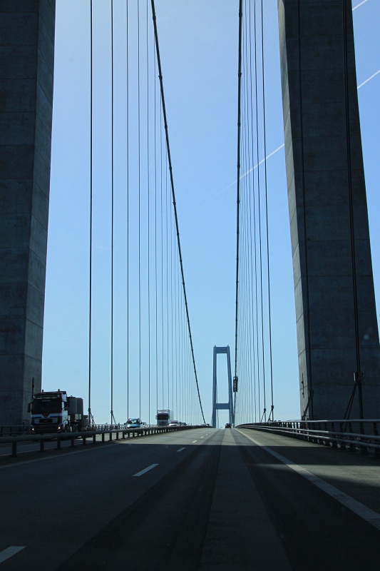 Matka Malmöstä Odenseen sisältää kaksi huikaisevaa sillanylitystä (Juutinrauma ja Iso-Belt), Stevns Klintin kalkkikiviset itsemurhakalliot (aivan reunalla kirkko, jonka eteisessä lehtileike jossain lähistöllä mereen mulahtaneesta kirkosta, joka oli liian reunalla - alttaritaulun paikalla ovi, josta näkyy pelkkää sinistä: meri ja taivas. Parempaa ei tarvita.) Hikiset raput alas, meri haisee mädältä kaalilta, kärpäset surisevat. Ranta pelkkää nyrkinkokoista kiveä, pitävät outoa rulinaa aallokossa.