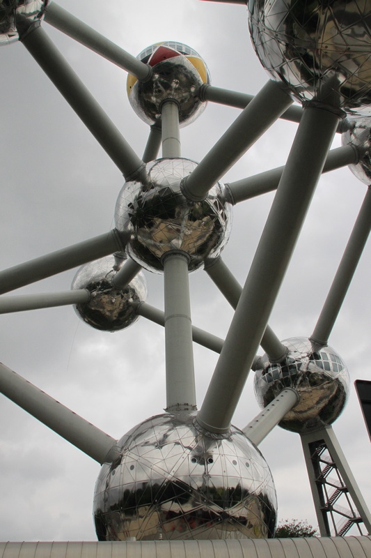 Ajamme Brysselin kautta, että näkisimme Atomiumin, rautamolekyylin muotoisen rakennuksen. Paikan päällä koettuna se on hämmentävintä paskaa vähään aikaan - yhtä aikaa massiivinen ja jotenkin hauras. 50-luvun krominkiiltoista futurismia ei voita mikään! Sisäänkin pääsisi, maksua vastaan, mutta paikalle kaartaa kaksi bussillista mummoja. Parkkikin maksaa 0.50e/30min, 1.50e/1h, 2.70e/1,5h, jne. Kehno diili.