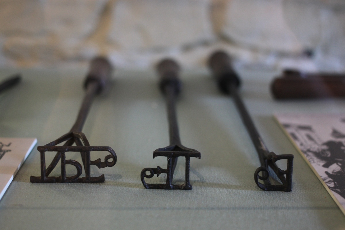 Kidutusmuseo alkaa. Tässä giljotiinin replika, aidolla terällä.