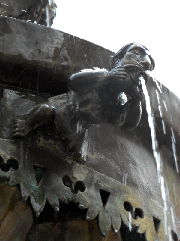 Raatihuoneen edessä kohtaamme Lunan suihkulähteen. Pronssihärvelin päällä seisoo Luna jousipyssy kädessä, oikeasta tissistä suihkuaa vettä. Hipit ovat lievästi hämmennettyjä.