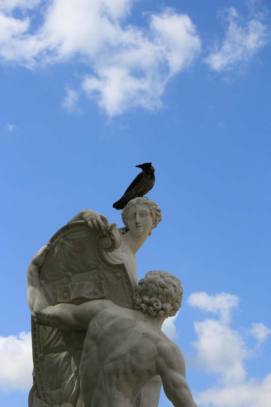 Itse palatsi oli tietenkin naurettavan kuvauksellinen, pylväskäytävää ja kullattua patsasta joka puolella. Tähtitieteellinen pääsymaksu ja intergalaktisen pitkä mummojono vahvistivat ennakkopäätöksen; ulkopuoli riittäköön. Ja sitähän riitti: muotopuutarhaa, suihkulähdettä, keinotekoisia roomalaisia raunioita, onnistuneita ja vähemmän onnistuneita patsaita. Eräskin marmoriukko joutui torjumaan lemmekkään lehmän lähestymisyrityksiä, toinen taas puhalsi paljesysteemillä ilmaa tyttösen hameen alle. Suihkulähteen erikoissorsat olivat oikeita kusipäitä, nokkivat surutta pulla-apajille yrittäviä varpusia ja karppeja.