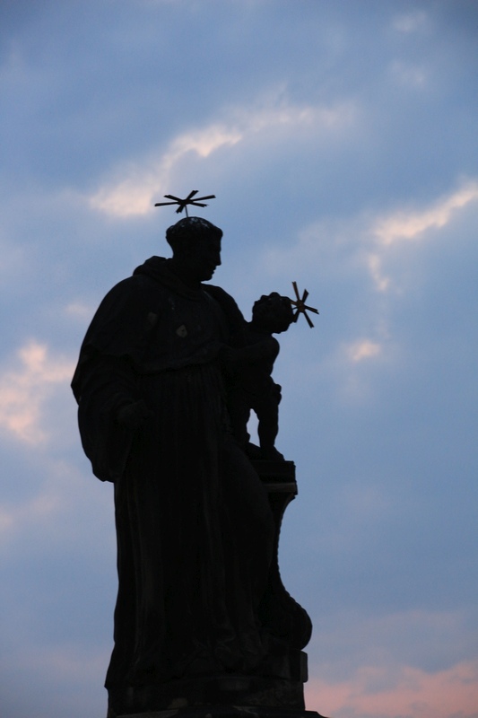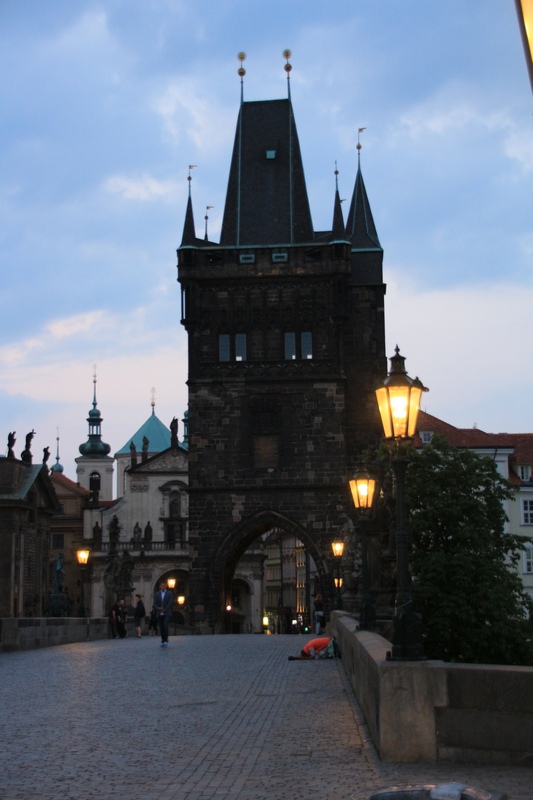Harhailen jossain, kunnes saavun joen rantaan. Kadut eivät ole pitkiä eivätkä suoria, oluthuoneet kutsuvat mutten mene, kuumuus hohkaa kivistä vaikka alkaa olla jo pimeä. Tulen sillalle, jolta näkee Kaarlen sillan, Linnan ja Vituksen katedraalin. Aurinko on juuri laskemassa ja ympyrä siten sulkeutumassa. Joella pörrää pieniä veneitä, vesi on tyyni, toisinaan rauhan rikkoo riehakas kannustus - joku tärkeä potkupallo-ottelu lienee käynnissä.