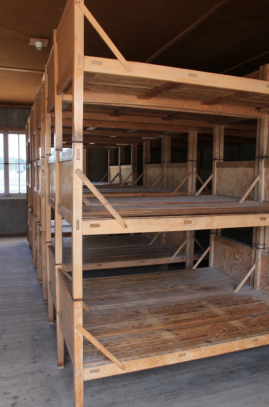Näimme asuinparakit, näimme kolmikerroksiset sängyt ja kiiltäviksi kuuratut puulattiat, vankilan ja eristyssellit, keittiöt ja suihkut. Infotauluissa oli niin paljon ihmiskohtaloita, pieniä yksityiskohtia ja julmuuksien kuvauksia, ettei sitä pystynyt käsitteleään. Oli tehty ihmiskokeita, pidetty nälässä ja kylmässä, matalassa ja korkeassa paineessa, seisotettu alle neliön kopissa vuorokausikaupalla, pidetty järjetöntä kuria, ylennetty väkivaltaisimmat ja sekopäisimmät vangit vankipoliiseiksi joilla oli rajaton valta mutta hengenlähtö todella lähellä, pakotettu siivoamaan kunnes siivottavaa ei kertakaikkiaan enää ollut edes ulkona, vaadittu petaamaan sänkyjä niin että peiton ruudut olivat kaikki suorassa - ja tämä siis pakkotyön päälle.