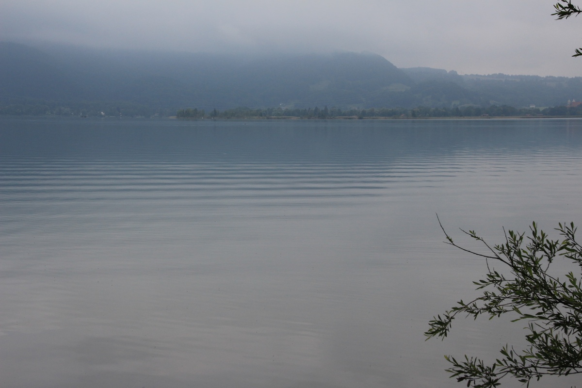 Navigaatiosetä joutuu heti jäähylle, seuraamme vaistojamme ja kehnohkoa karttakirjaa, josta loppuu erottelukyky heti. Kaikkia kyliä ei mainita, suunnista siinä sitten. Ensikosketus Alppeihin otetaan Kochel am Seen kylässä, jossa meitä odottaa yllättäen korkea jyrkänneseinä ja uimahallinsininen järvi. Kaoottinen teinilauma kanotoi usealla kanootilla, kuuluvaan ääneen, tyyntä vedenpintaa. Silkkiuikut sukeltavat turvaan, pilvet roikkuvat alhaalla ja näkymän on hyvin epätodellinen. Parkkipaikalle kaartaa bussillinen eläkeläisiä, arvatenkin espanjalaisia mummoja. Karkuun ja äkkiä.
