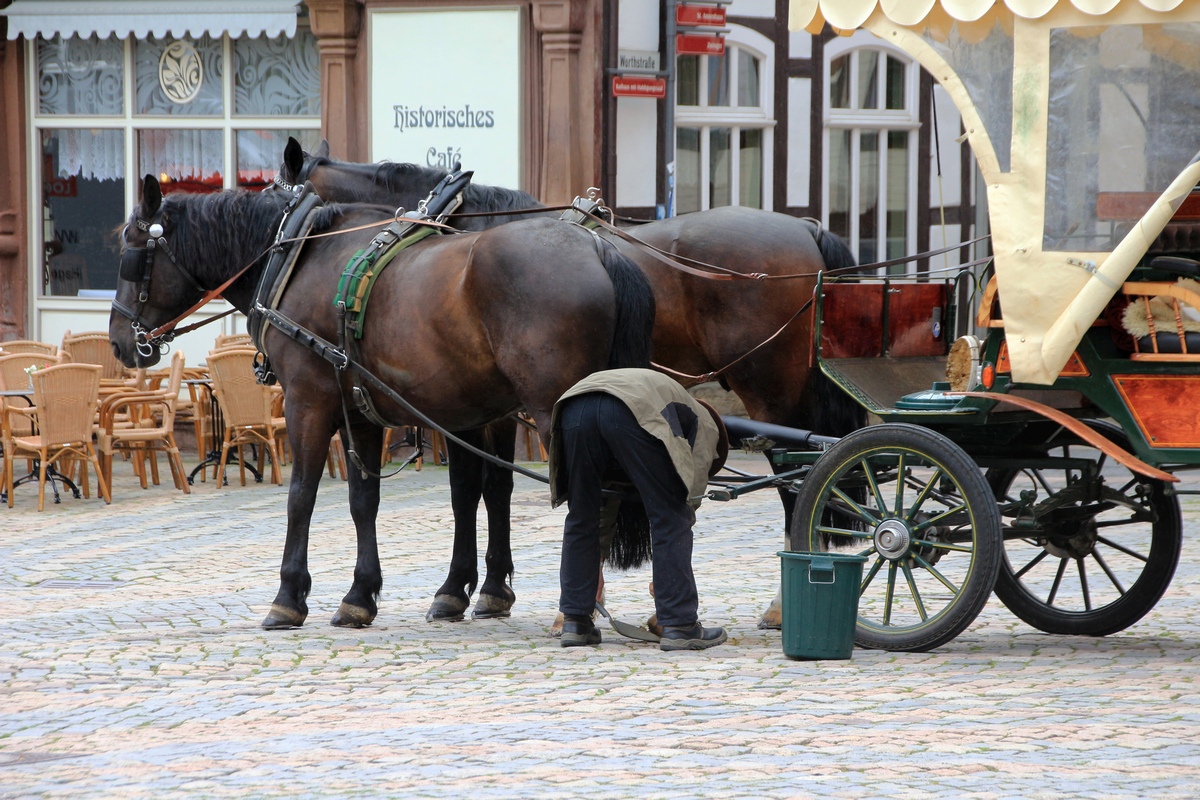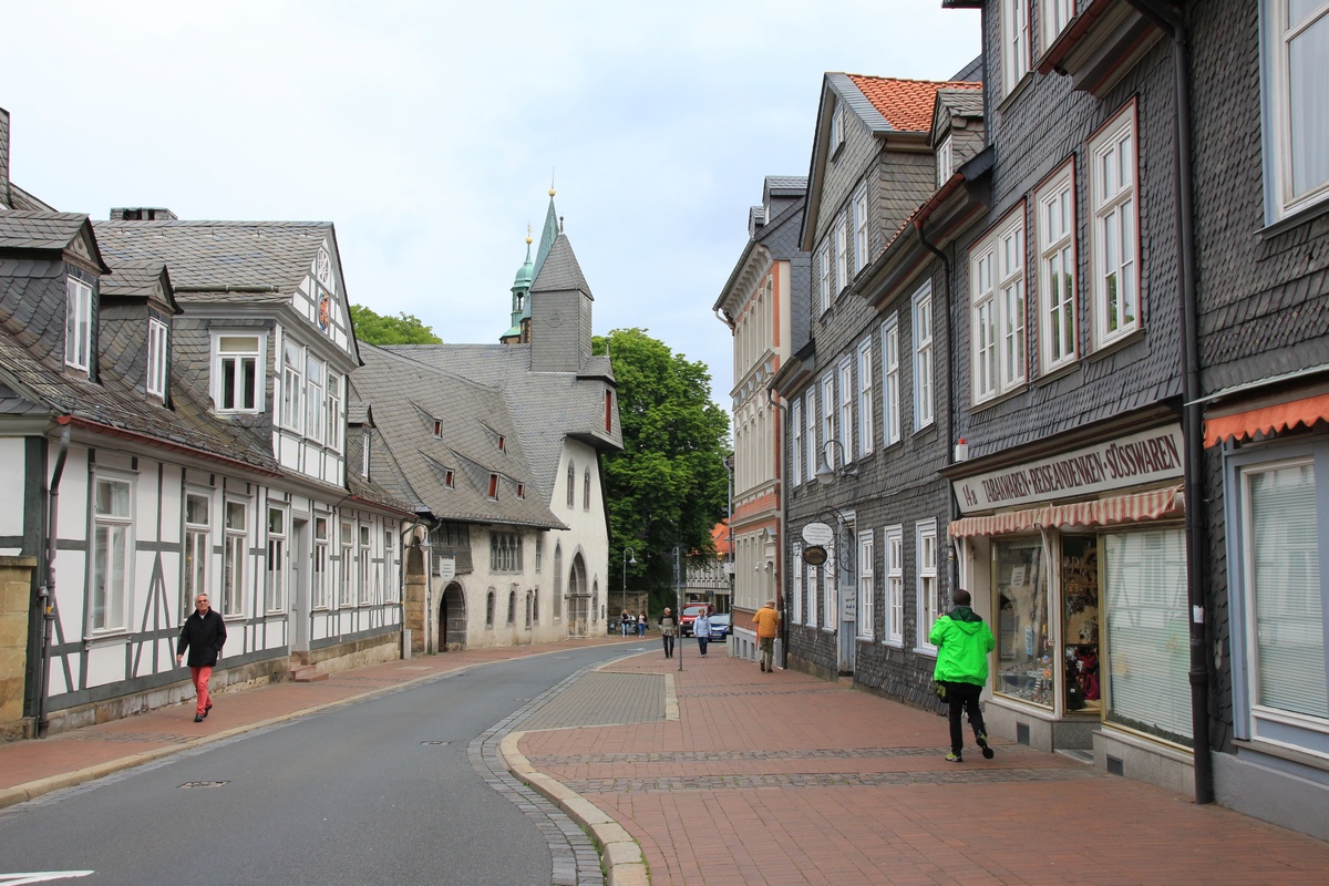 Ajamme Goslarin keskustaan, kokonaisen kilometrin. Paikka on hämmentävän kaunis, mutta eri tavalla kuin yleensä - täällä voi aistia tiettyä pohjoisen jylhyyttä. Kujat ovat kapeita ja mutkaisia, talot pieniä ja ristikkorakenteisia, ylimääräistä koristelua ei juuri harrasteta - paitsi kultaisia tekstejä mustissa hirsissä ja vuosilukuja, jotka ovat hämmentävän vanhoja; enimmäkseen 1500-lukua. Vanhimmassa talossa on tietenkin modernin taiteen museo. Kylki kyljessä ne siinä kyyristelevät, kuin talvea odottaen. Katot on katettu liuskekivisillä tiilillä, kuin meikäläisillä päreillä. Monin paikoin katonekijällä on käynyt tuuri, on saanut päällystää seinätkin samalla materiaalilla - lasku tulee sitten perässä, kiitos.
