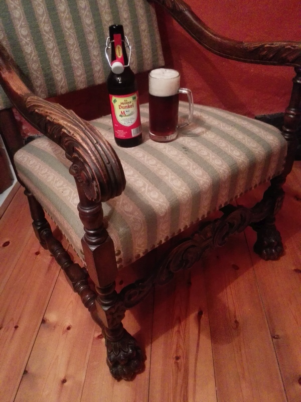 Tummaa olutta leijonanjalkaisessa tuolissa.