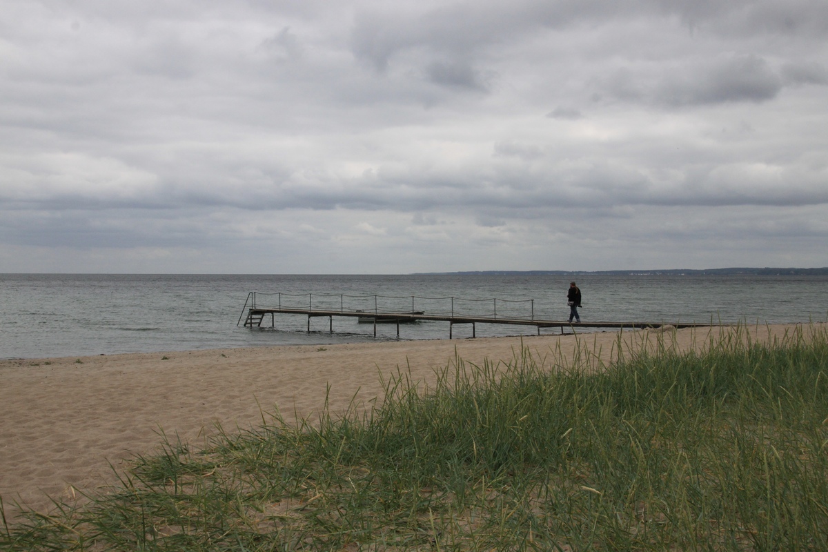 Päätän kävellä vielä laiturille, lautasta huomasin nimittäin erikoisen palmurannan. Tuuli on kova, ilma edelleen kolea ja taivas tumma. Valoilmiö Tanskan yllä ei luovuta; saan mahtavia kuvia tyrskyistä, traktorintuomasta hiekkarannasta ja palmuista, jotka on istutettu ihan maahan asti - ei ruukkuihin, kuten Trelleborgissa. Eteläruotsalaisilla taitaa olla joku palmufetissi. Welcome to Tropical Beach, julistaa kyltti - illuusio kyllä hieman rakoilee. Kävelen kaarevan aallonmurtajan päähän asti kengät täynnä hiekkaa, hyvien kuvien toivossa. Sieltä ei kuitenkaan irtoa mitään mainittavaa, merilevä vaan tuoksuu. Takaisin hostellille, siis. Rantakadulla tanskalaiset raggarit huudattavat jenkkirassien moottoreita, paikallisia tyttöjä hihityttää - väärällä tavalla. Ohitan terassin, jolla esiintyy stand up -koomikko. Murre on niin paksu, että puolet menee ohi, mutta jutut eivät ole hauskoja. Kukaan ei naura. Tunnelma pilalla ja paha mieli.