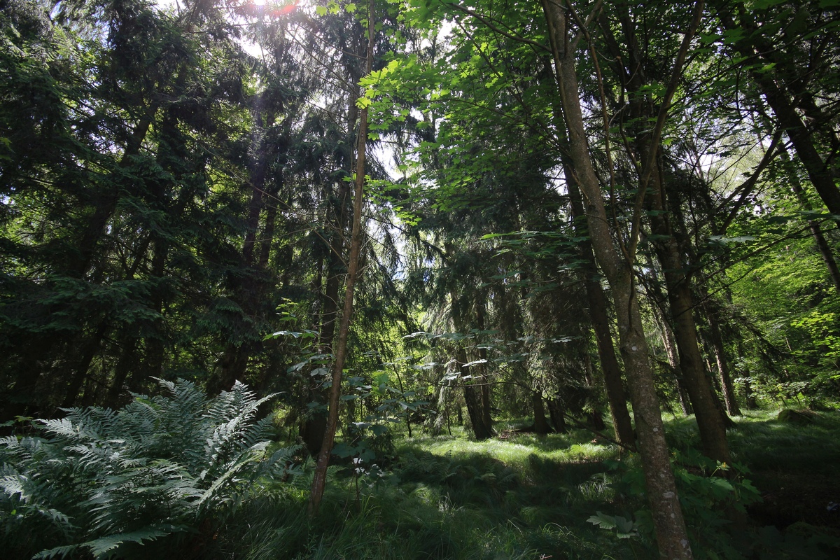 Ulkona laiduntavat eri aitauksissaan muutama hevonen, jokunen kani - ja lauma peuroja. Niitä kai saa tarhata täällä. Naapurilla on lehmiä ja kanoja, kissaa ei ole vielä näkynyt mutta eiköhän sellainenkin löydy. Kahden vuoren välistä näkyy sopivasti Atterseelle, rinteillä on siellä täällä samanlaisia alppimajoja. Lähteet pulputtavat ja purot solisevat, jossain kukkuu käki tai ehkä kello.