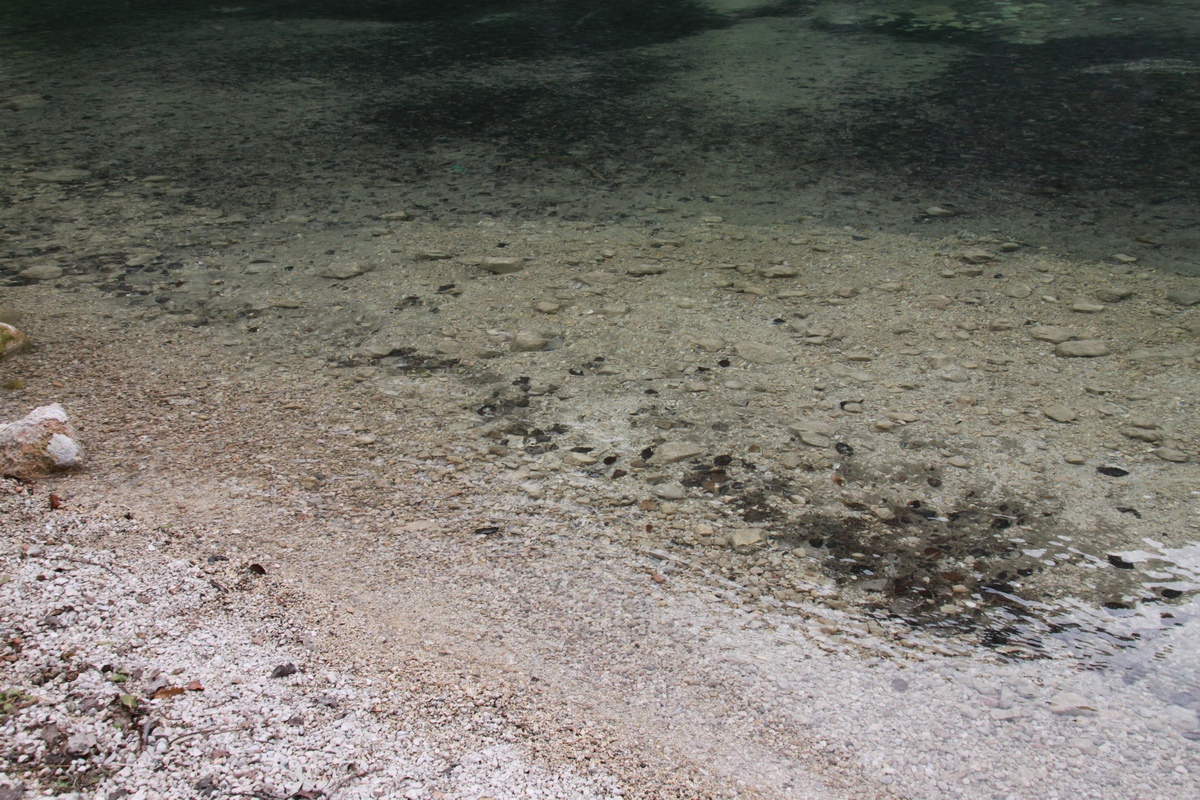 valkoista soraa ja outoa metsää Hirschaun niemimaalla. Tämä on itse asiassa suisto - joki vain kuivuu kesäisin.