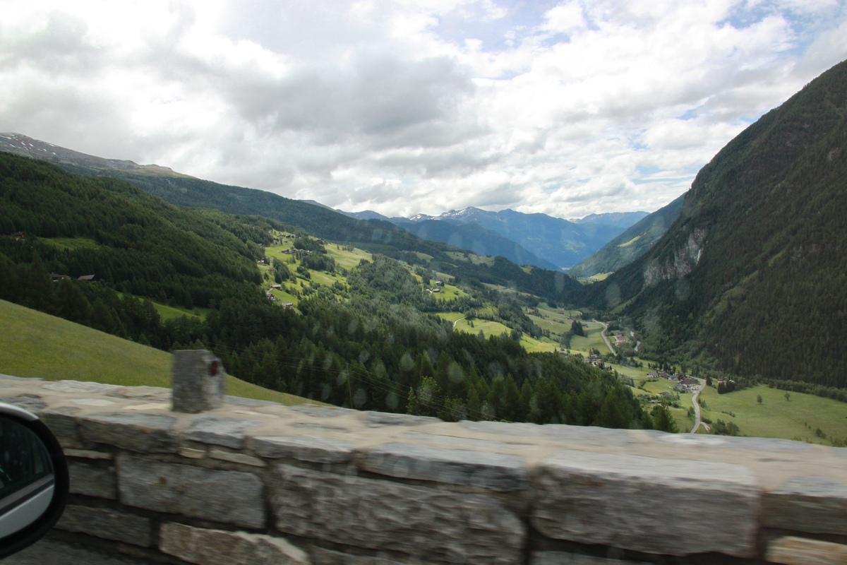 Grossglockner Hohenalpenstrassen alkupiste Heiligenblut saavutettiin nopeasti, ilma oli hyvä, eikä luvattua ruuhkaa näkynyt missään - maksukopin tätikään ei ollut kopissaan, vaan muilla asioilla. Noin kolmenkympin pääsymaksu tuntui alkuun tyyriiltä, jälkeenpäin ei niinkään - oli siinä kokemusta koko rahalla.