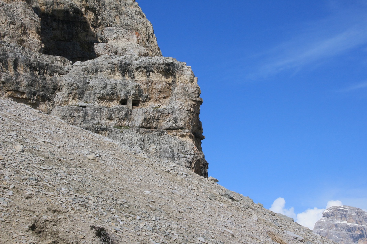Tuosta pääsisi betoniselle ampuma-aukolle. Polku ei vaikuttanut vakaalta.
