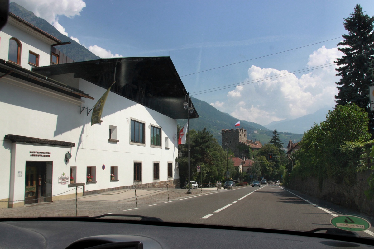 Kohti Itävaltaa ja Innsbruckia. Navigaatiosetä käskee ajamaan Bolzanoon, kiitän neuvosta mutta käännyn kohti Meranoa. Moottoritiellä on kiva posottaa ikkunat auki, kuivuu tukkakin samalla kätevästi. Jokilaakso alkaa näyttää heti paljon kivemmalta, kun ei tarvitse ajaa Bolzanoon, tuohon Italian Kouvolaan tai ehkä jopa Imatraan - siellä ei ole kertakaikkiaan mitään kiinnostavaa.
