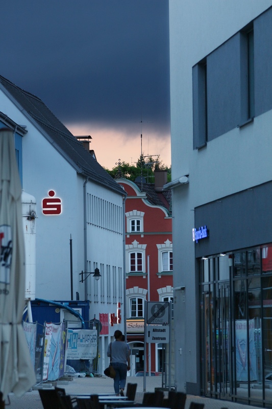 Kävelykatu ja uhkaava taivas.