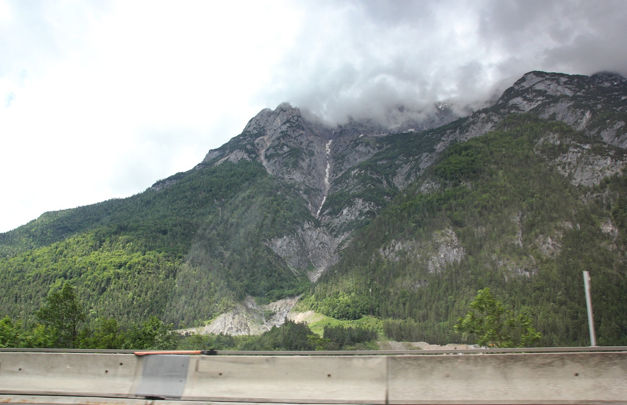 Harvinaisena poutaisena hetkenä pysähdyimme jossain laaksossa, välipala mielessä ja takakontti itävaltalaisista oluista tyhjänä. Vaan ah ja voi, saksalainen paistopistekulttuuri ei ollutkaan ylittänyt rajaa. Sikäläisten markettien auloista kun saa ties minkälaisia suolaisia leivonnaisia ja makkaroita, vaikka puolikkaan sian jos haluaa - vaan eipä saa itävallasta. Koko kauppa kyllä tuoksui tuoreelta pizzalta, mutta tarjonta hyytyi patongin ja croissantin jälkeen. Erilaisia makkaroita olisi ollut kymmenittäin, mutta eivätpä ne kylmänä maistu. Oluthyllykin oli kovin kalju, tuli mieleen 90-luku Suomessa. No, ihminen elää leikkeleellä ja juustollakin hetken.