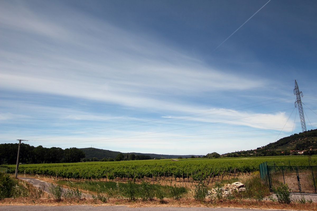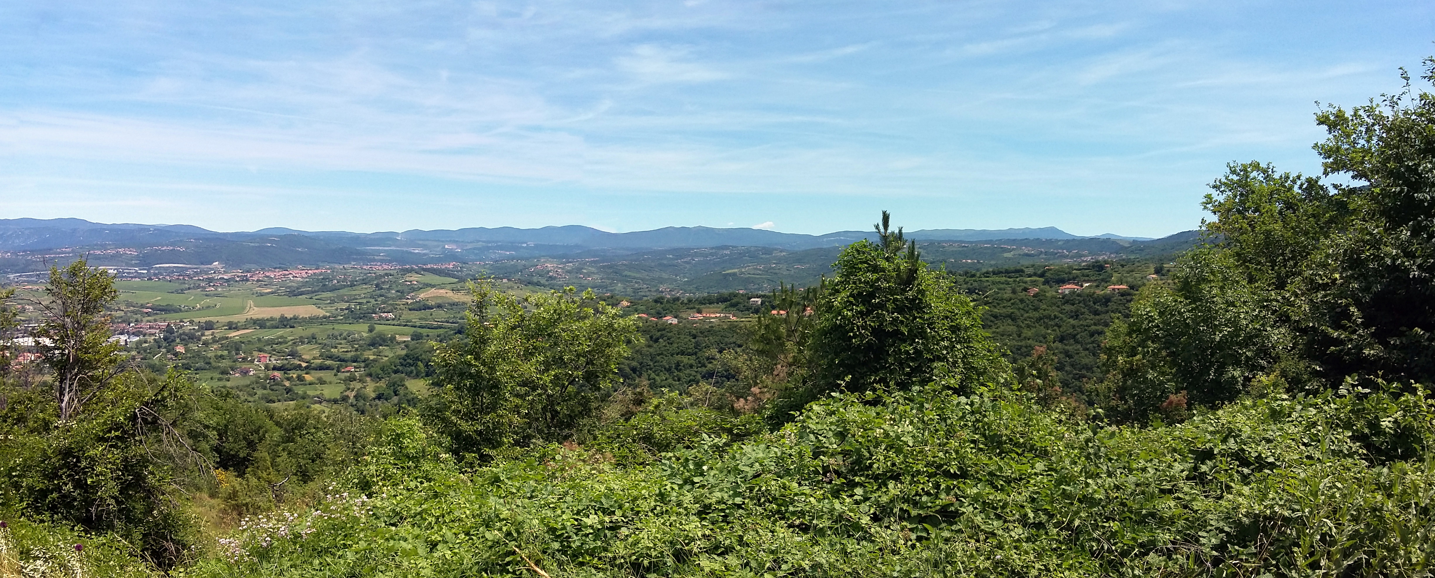 Pikavisiitin jälkeen ajelimme rantaa pitkin kohti Sloveniaa ja Pirania. Näkymiä riitti; kumpuileva maasto täynnä pylväsmäisiä puita, viinitarhoja ja paikallisesta kivestä rakennettuja taloja. Meri vilahteli silloin tällöin.