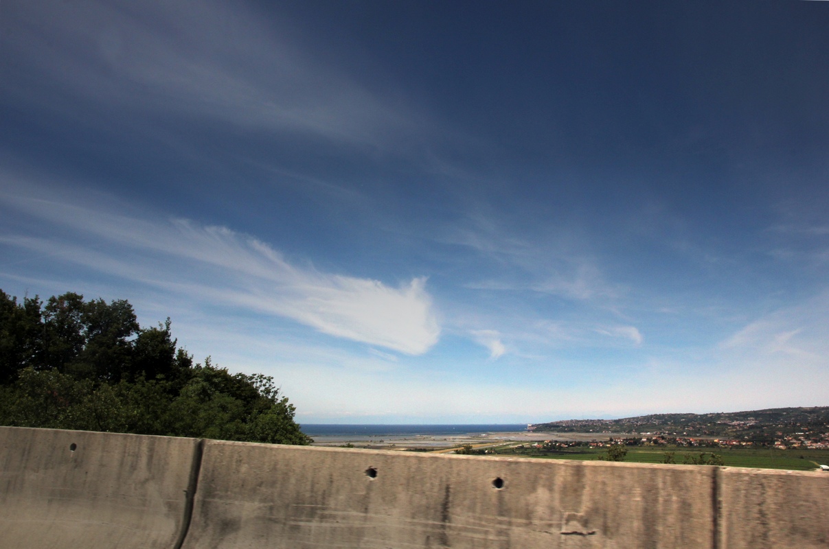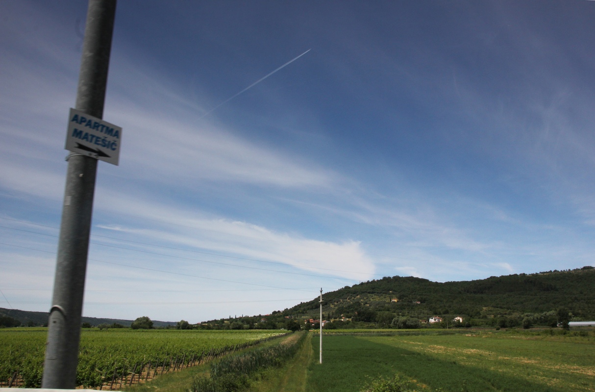 Ajelimme Kroatian puolelle erikoisia oluita ostamaan ja maisemia katsomaan. Tie oli taas pelkkää siltaa ja tunnelia. Yhden tunnelin jälkeen kaikki kuitenkin muuttui äkisti; olimme maan sisällä ollessamme tulleet vuoristosta rannikolle. Tuoksu oli eri, valokin, kukat ja puut, ilman tuntu. Maa oli vaalean keltaista, paitsi siellä missä oli kaivettu, tumman punaista. Kaikkialla kasvoi viiniä ja oliivipuita.