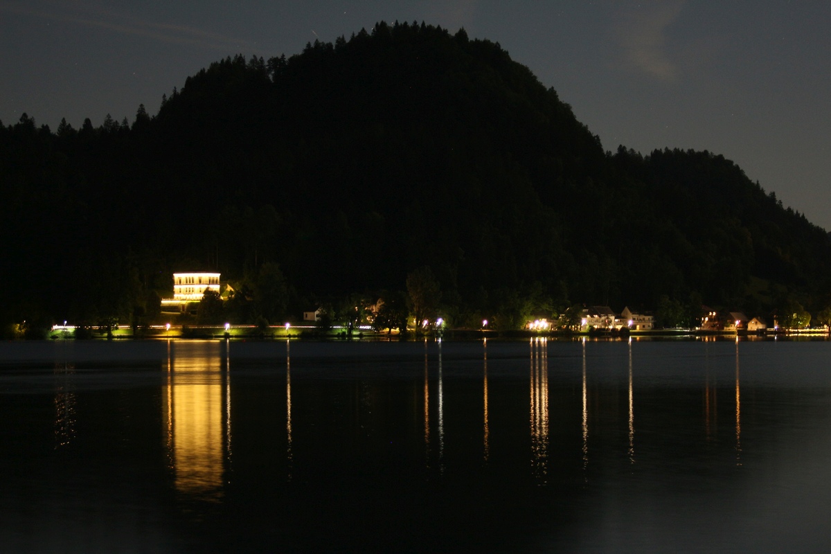 Bled illalla, linna hyvässä valaistuksessa.