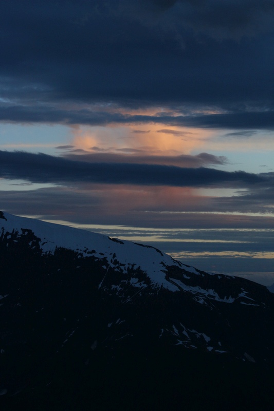 Herätys viideltä, auringonnousua katsomaan. Olihan näky. Ensi säteet siilautumassa vuorenhuipun yli ja maiseman valaistuminen hitaasti, kuin joku olisi nostanut suurta rullaverhoa. Samalla palasivat myös värit, vähä vähältä, ensin keltainen lumeen.