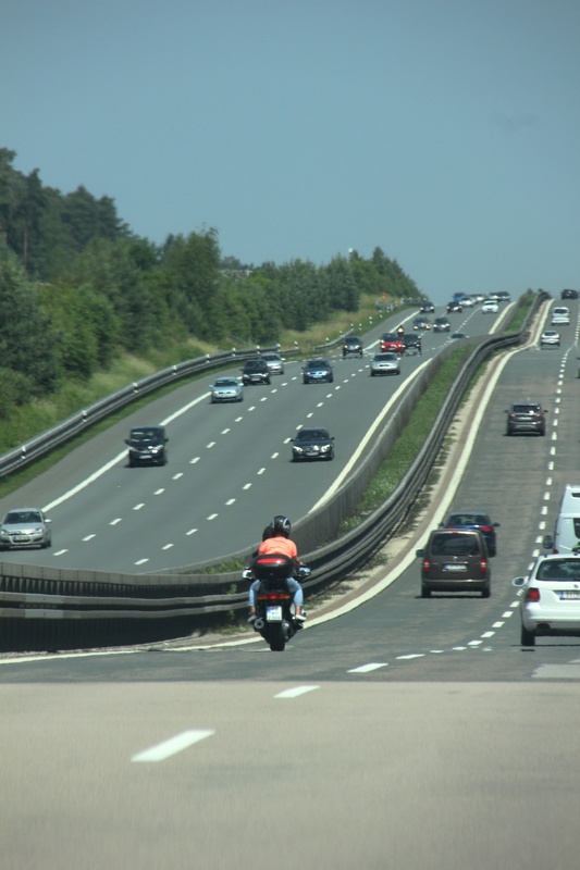 Hieman Mittenwaldin ulkopuolella poliisi pysäytti kaikki ei-saksalaiset autot ja tahtoi nähdä asiakirjoja. Suomen passi näytti taas voimansa, ei tarvinnut avata takaluukkua ja esitellä likaisia sukkia, kuten viereisen kaverin.