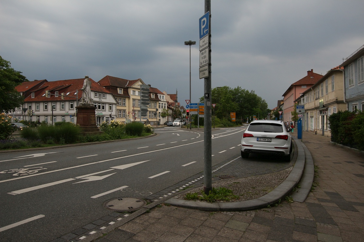 Oli alkanut sataa, odottelimme pahimman ajan ison puun alla. Ukkonen jyrisi kaukana, tai ehkä se oli tyhjä sora-auto. Celle mainitaan pohjoisen kauneimmaksi ristikkotalokaupungiksi - ja se on. Vanhaan osaan päästyä alkoi tietenkin taas sataa, ensin hiljaa ja sitten jo ihan oikeasti. Etsimme sopivaa ruokapaikkaa, ensimmäinen saisi kelvata - vaan ei kuitenkaan Steakhouse Grand Canyon. Eikä ainakaan tusina-kiinalainen. Eikä Kreikkalainen. Italialaisen terassille mahtui, isot varjot suojasivat sateelta.