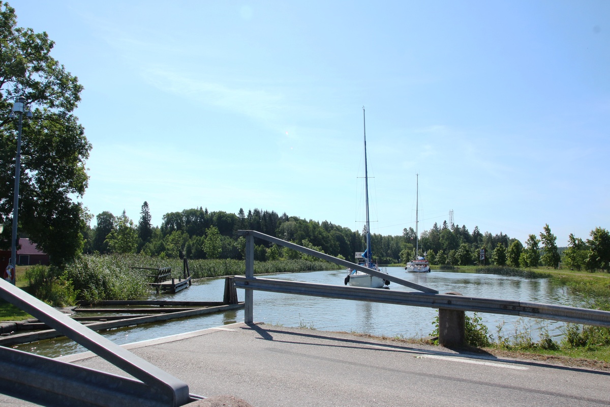Saavuimme puolivahingossa Götan kanavalle, tie ylitti sen nostosiltaa myöden. Puomit laskeutuivat heti yli päästyämme, oli pysähdyttävä katsomaan.