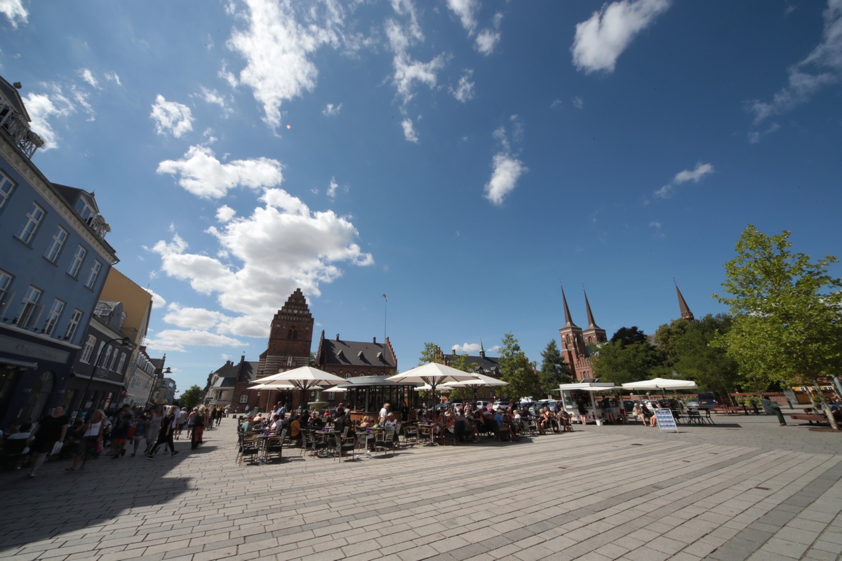 raatihuone, taustalla Skt. Laurentius - entinen kirkko, nykyinen museo. Sen alta on kaivettu esiin keskiaikaisia asioita.