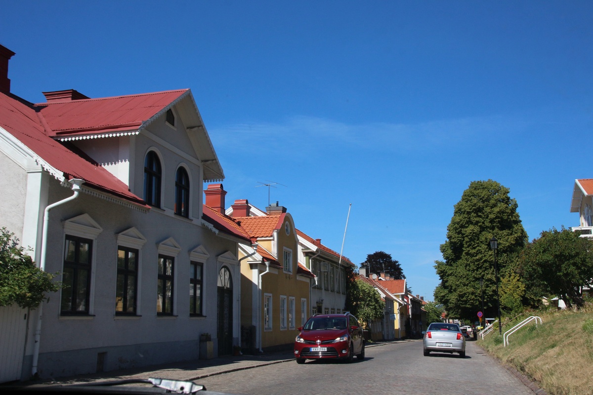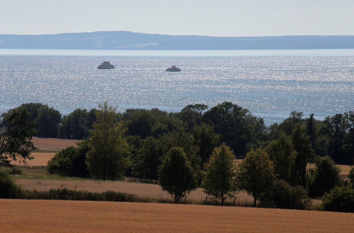 Lautat Visingön saarelle kohtaavat. Vätternin sinertävä autere leviää maalle asti