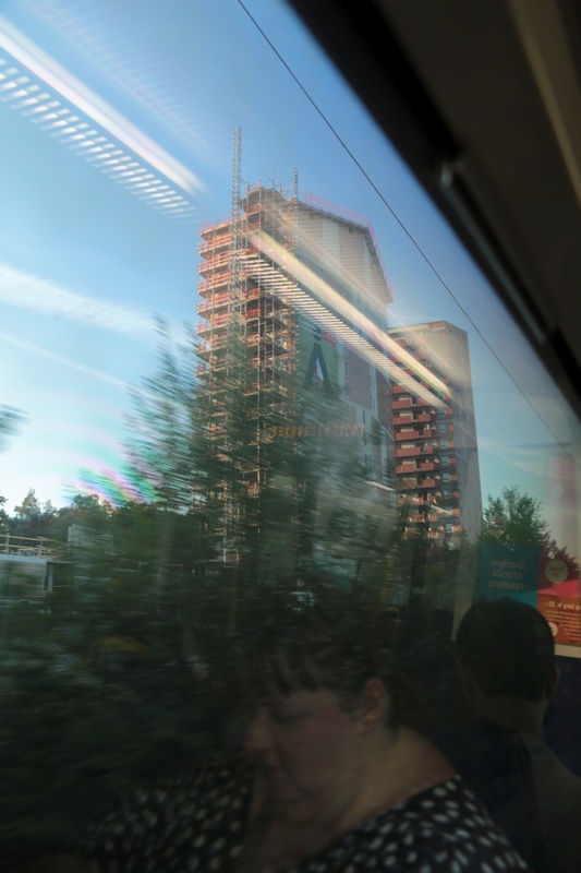 Kiipesin sillalle näkymien toivossa - värit hehkuvat, mutta siihen jää. Autoja puskee keskustatunnelista.