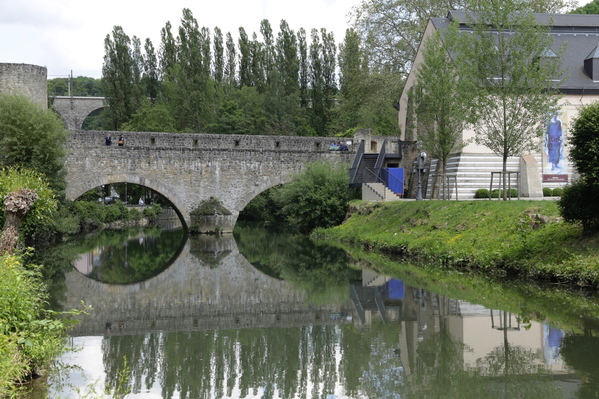 Joen nimi on Alzette, aurinko tekee siihen läikkiä.