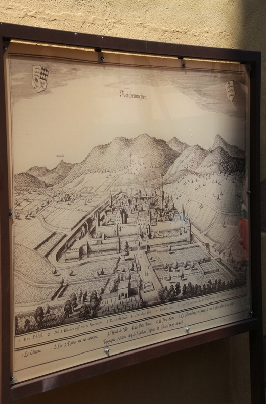 Riquewihr / Richewihr / Reichenweier 1644. Täällä rajaseudulla puhutaan elsassia, joka on suunnilleen saksan ja ranskan sekoitus.