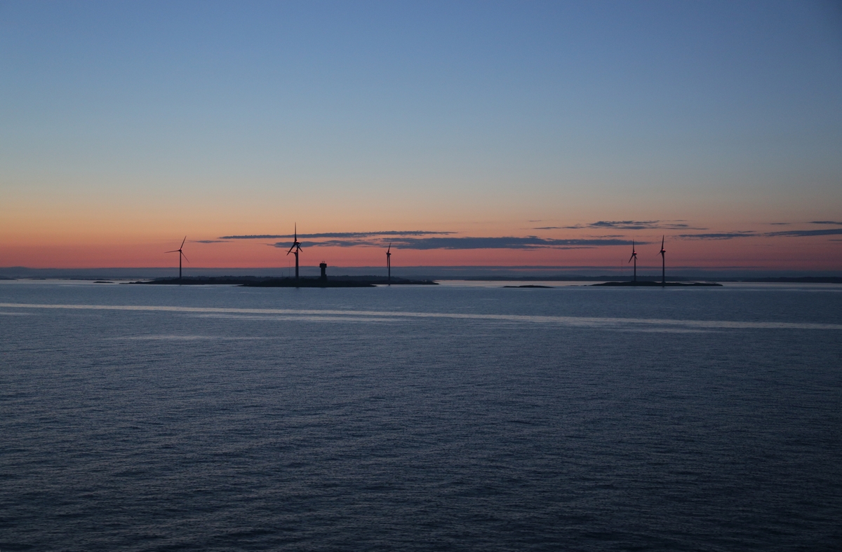 Båtskärin tuulivoimalat ja Nyhamnsgruvanin hylätyn rautakaivoksen torni/majakka