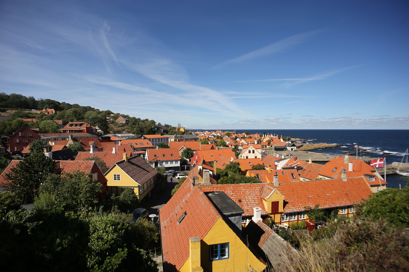 Sandvigistä Allingen, Tejn ja Døndalenin kautta Gudhjemiin, upeaa rantatietä joka nousi välillä korkealle rantatörmälle, pudotakseen kohta taas melkein merenpinnan tasolle. Aallot tyrskyivät, suola tuoksui ja lokit huusivat kilpaa mustavaristen kanssa. Oli kalastajakylää, mietoa turistirysää, kunnianarvoisaa satavuotiasta rantahotellia ja vähän yllättäen lomaosake-slummin kaltaisia esiintymiä.
