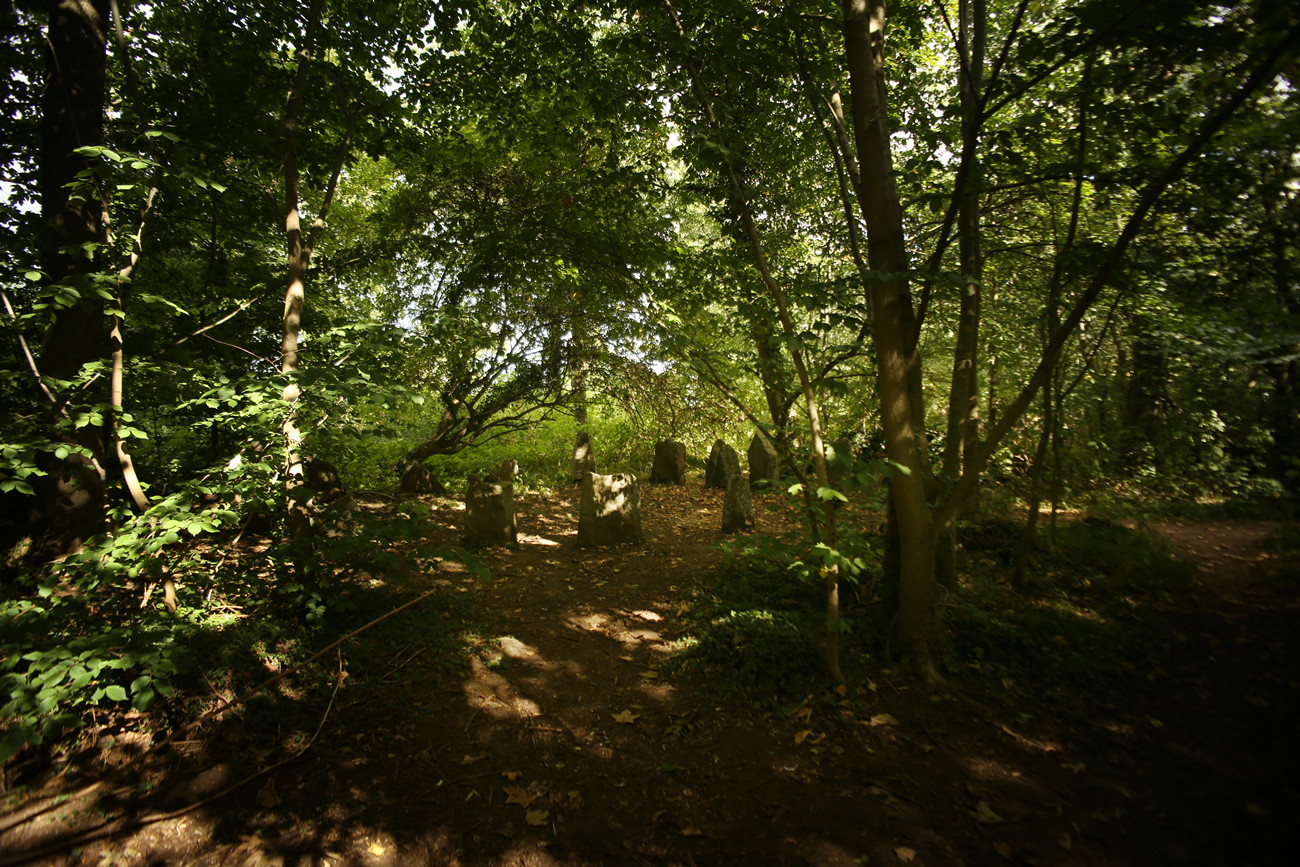 Muutaman kymmentä askelta polkua pitkin, ja vastaan tuli pronssikautinen hauta - sen merkiksi oli nostettu pystyyn iso kivi, ilman kaiverruksia kuten oli tapana. Laivan muotoon asetellut kivet löytyivät seuraavana, ylitsekaartuvien puiden alta. Lähistöllä näkyi myös hieman uudempaa kiviaitaa ja betonibunkkerin palasia, oletettavasti toisesta maailmansodasta. En kuitenkaan lähtenyt shortseissa nokkospuskaan, olkoot siellä. Lähistöllä kohisi meri, vai oliko se maantie?