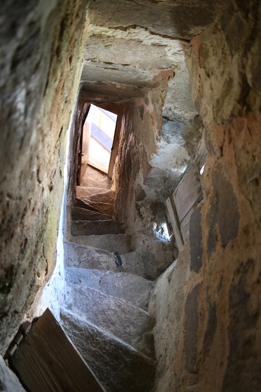 Neliskulmaisissa aukoissa oli ennen palkit, jotka kannattelivat ulkopuolla ollutta kävelysiltaa