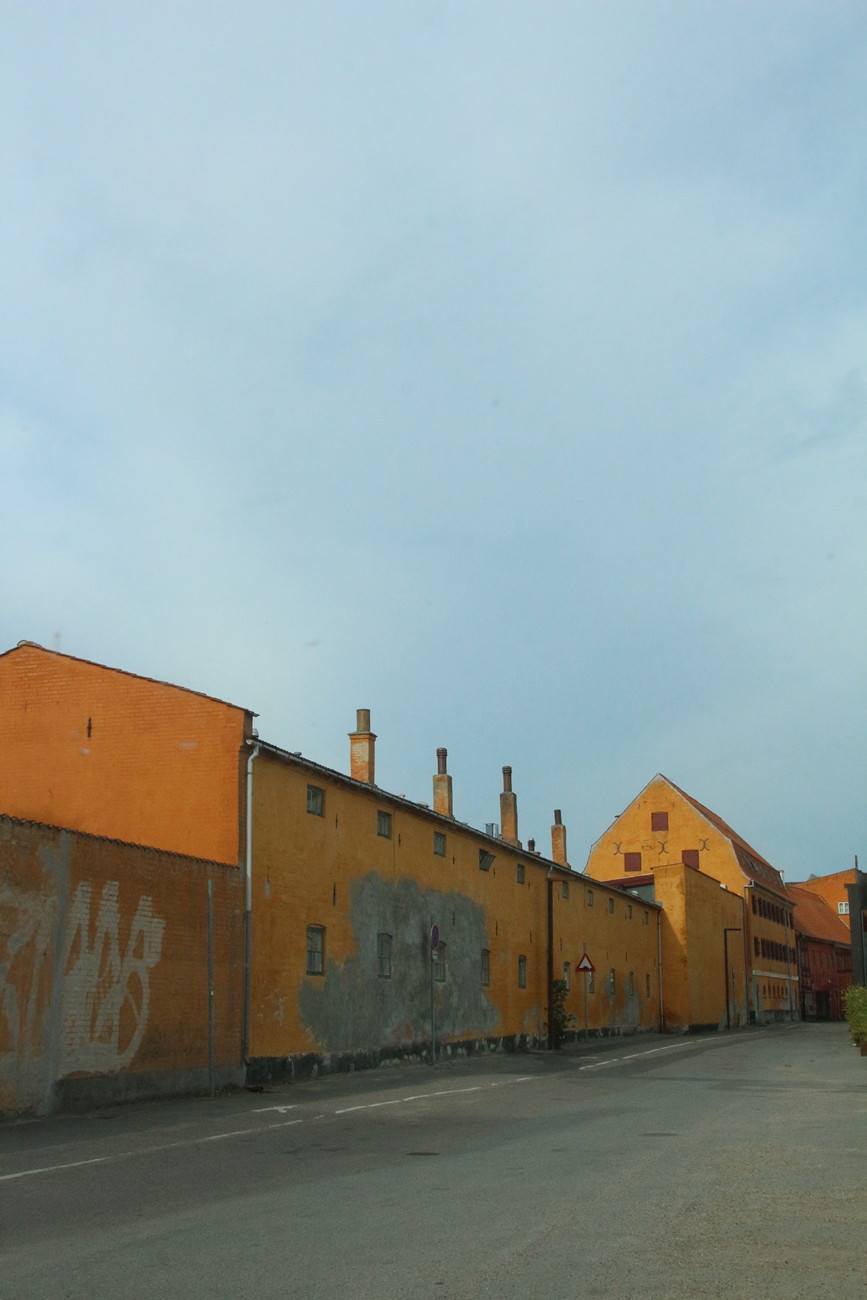 Maasto on kumpuilevaa, enimmäkseen peltoa, pieniä lehtimetsän palasia siellä täällä - kuten koko Fynin saari tähän mennessä. Satoi enemmän ja vähemmän, horisontti lupaili kirkkaampaa muttei lunastanut kuin hetkeksi kerrallaan. Ajoimme Harndruppiin kaupoille.