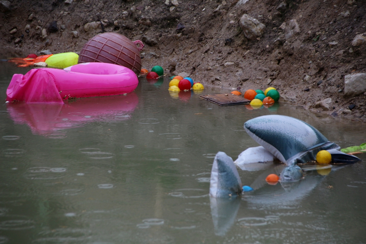 Kahden litran kaljapullot pyörivät hiljaa tuulessa.