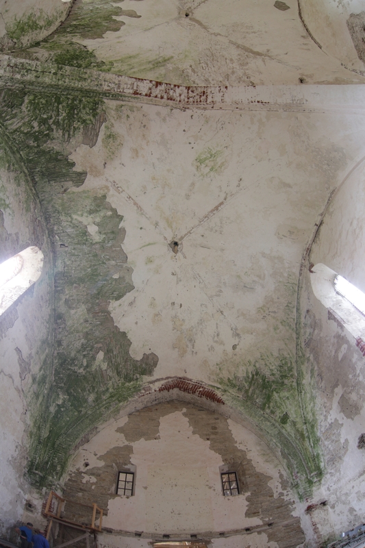 Levää holveissa ja umpeenmuurattuja ikkunoita.